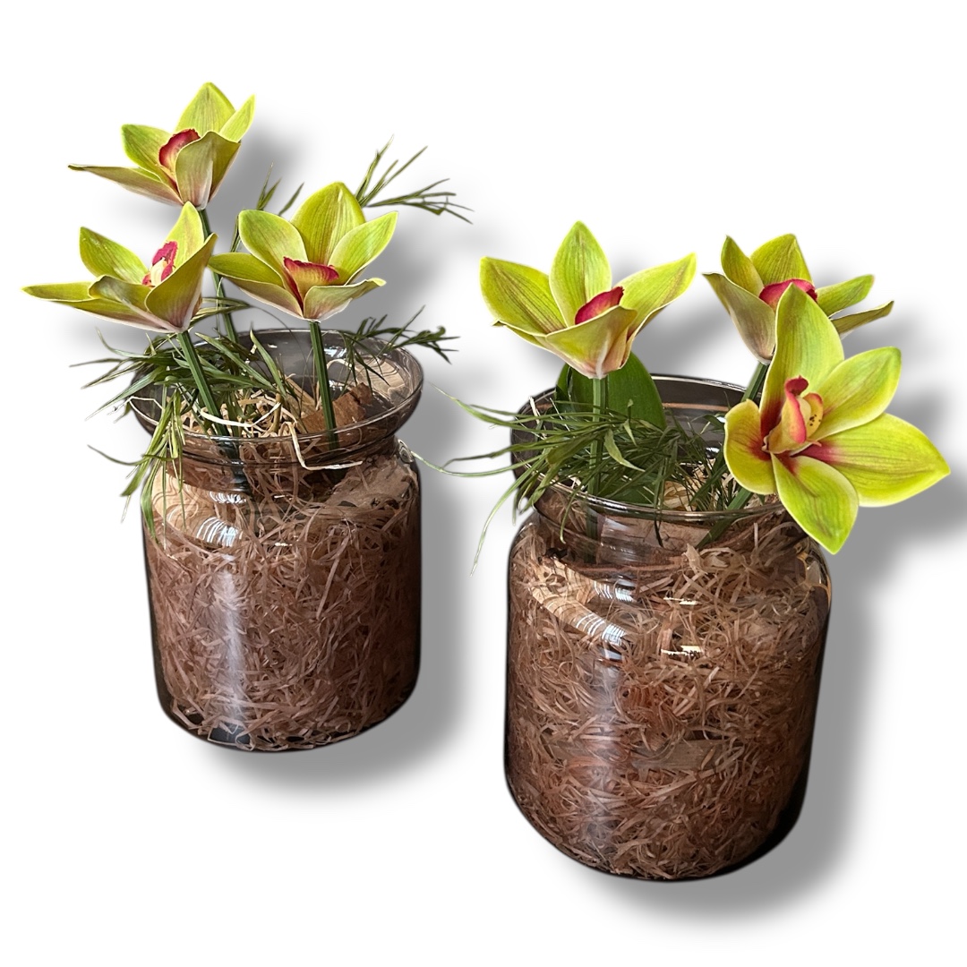 Orhideed klaasvaasis sobib hästi dekoratsiooni ja piduliku õhkkonna loomiseks. Dekoratsioon aitab luua läbimõeldud, piduliku ja stiilse üldmulje.